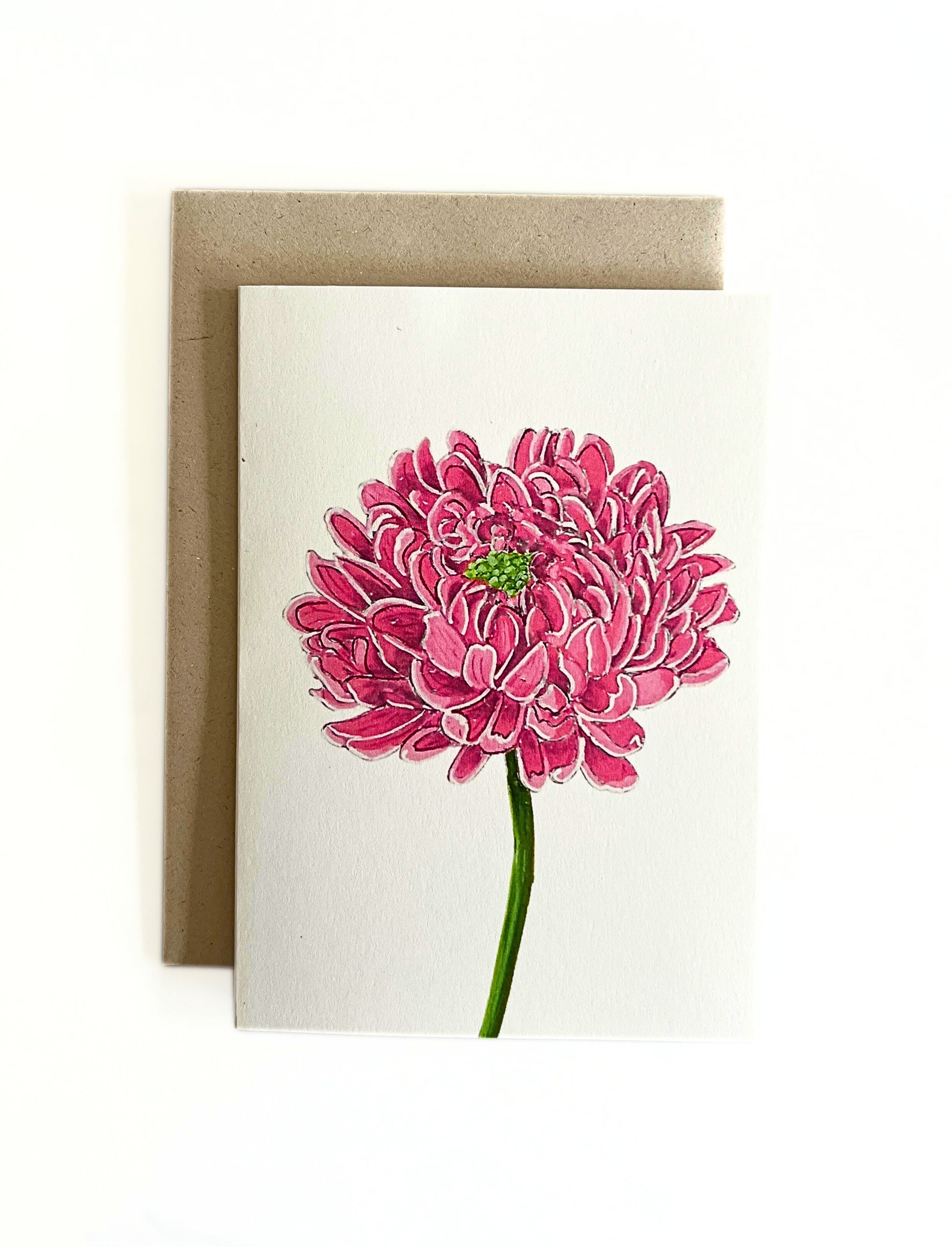De chrysant is voor mij de bloem die kleur brengt aan de soms sombere herfst. Het is een symbool voor vreugde, optimisme en een lang leven, én de geboortebloem van de maand november. Elke bloemblaadje lijkt zorgvuldig gevormd, als een ode aan geduld en gelaagde schoonheid. Een bloem die niet haast, maar volharding viert. Je kunt de kaart mooi neerzetten in een van de kaartenhouders.
